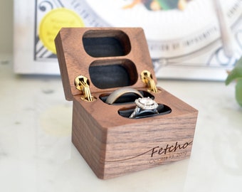Slim Flip-Up Wooden Engagement Ring Box - Personalized Proposal Ring Holder