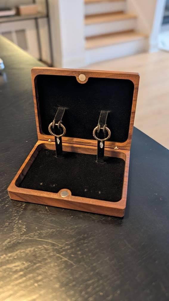 Most jewelry boxes are too bulky and designed to hold all types of earrings. Our slim, flip-up wooden earring box is specifically fabricated to showcase small hoop earrings (up to 1.5" diameter) in a way that feels like a grand reveal. Whether it’s for an anniversary, a birthday, or a valentines gift, this pocket-sized box adds a layer of magic to the moment.